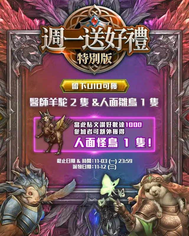 [官方情報] IG週一送好禮(醫師羊駝 2 隻 + 人面雛鳥 1 隻,讚數達標額外人面怪鳥) |