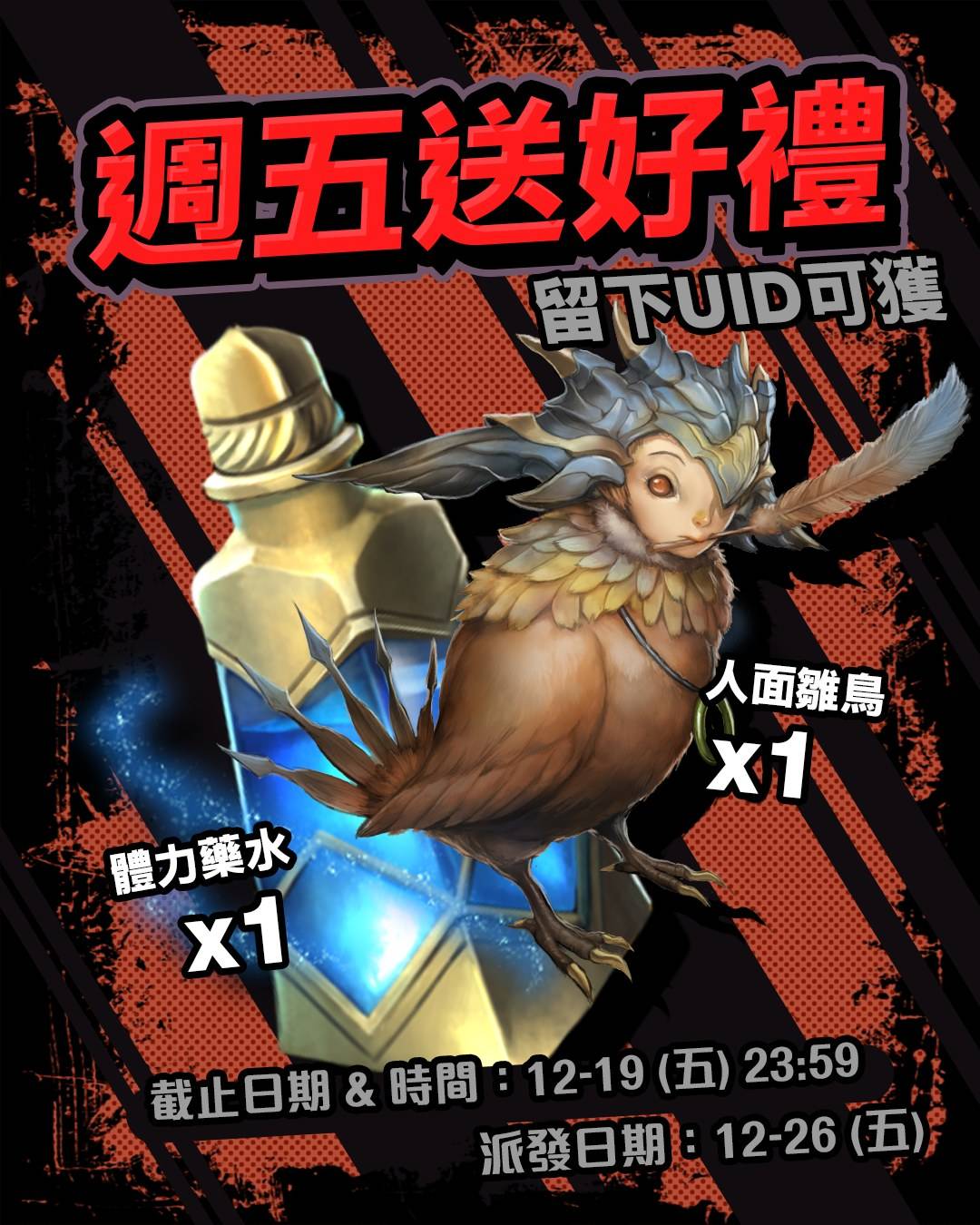 [官方情報] IG 週五送好禮 (體力藥水 1 支 + 人面雛鳥 1 隻) |
