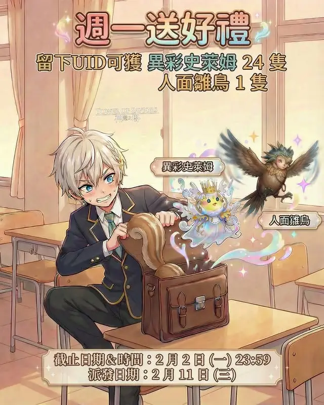 [官方情報] IG週一送好禮(異彩史萊姆 24 隻 + 人面雛鳥 1 隻) |