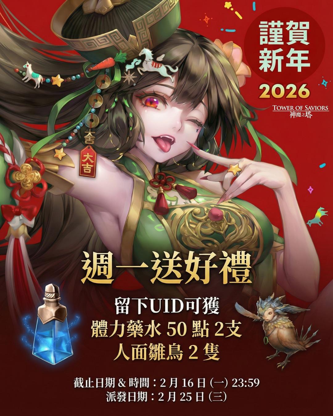 [官方情報] IG週一送好禮(體力藥水 50 點 2 支 + 人面雛鳥 2 隻) |